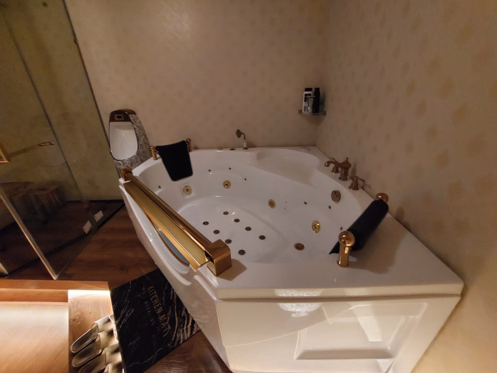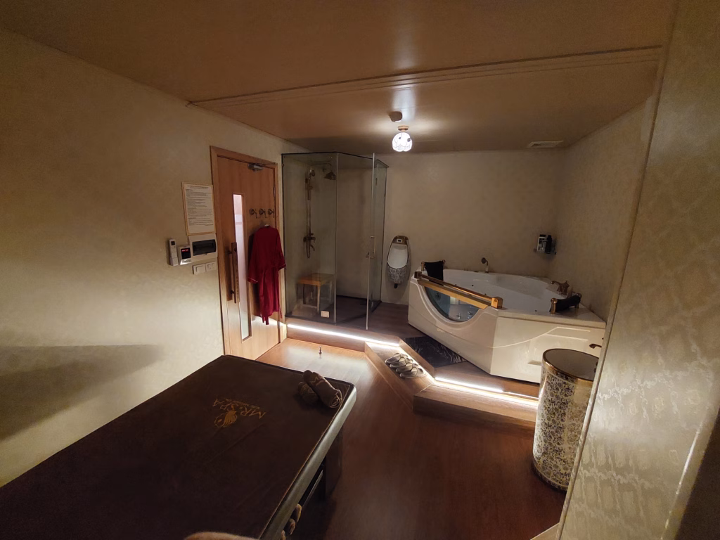 個室はこんな感じで普通のハノイの風俗・VIPマッサージよりもかなり広めな設計です。ベッドも広く、お風呂も2人が余裕で入れます。