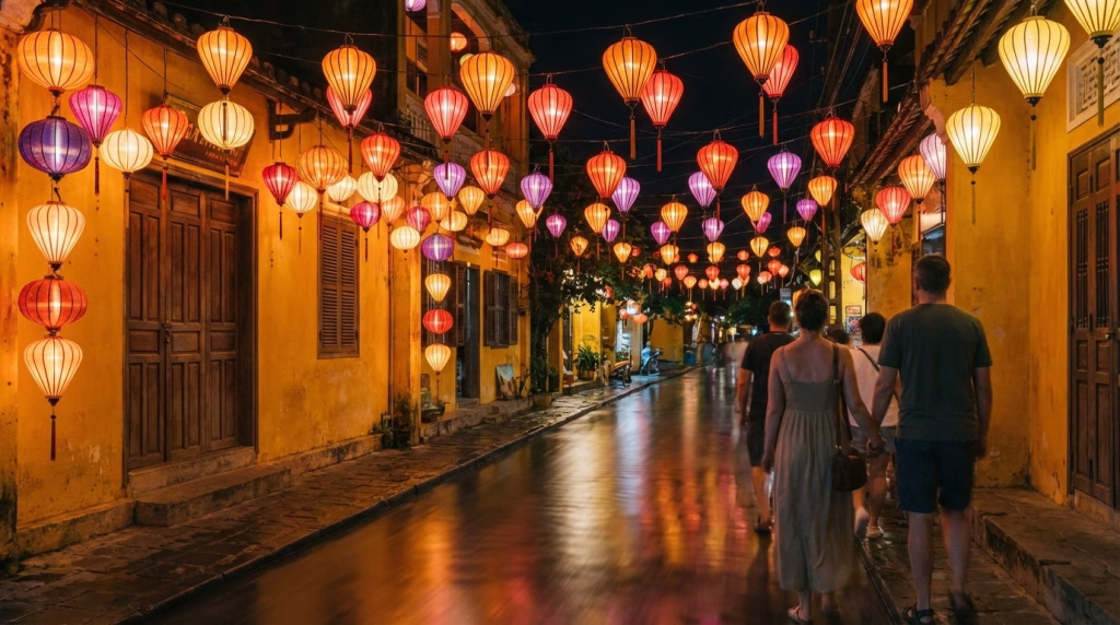 ダナンのミーケービーチで朝日を浴びながら散歩し、午後はスパでリフレッシュ。夕方からはタクシーで約30分のホイアン旧市街へ。数百個のランタンが灯る幻想的な街並みは、インスタ映え間違いなしです。